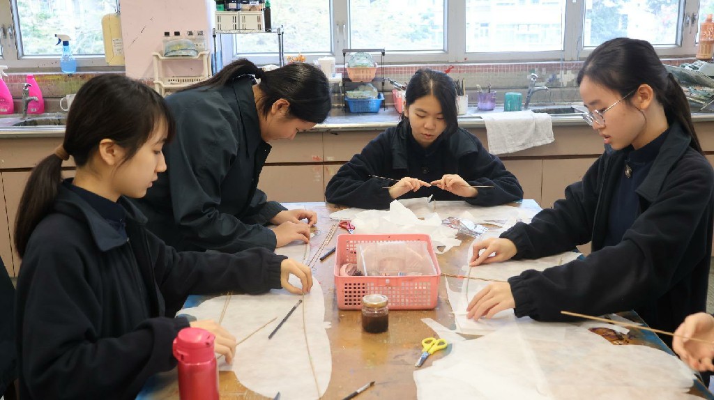 The Visual Arts and Music Departments have collaborated to plan a series of diverse and enriching creative activities for all students and staff. Students have the opportunity to experience dynamic sand art firsthand, use carving tools to explore Chinese seal cutting, create their own unique mosaic cup lamps, craft traditional kites, and participate in an a cappella workshop to appreciate the beauty of vocal harmony.